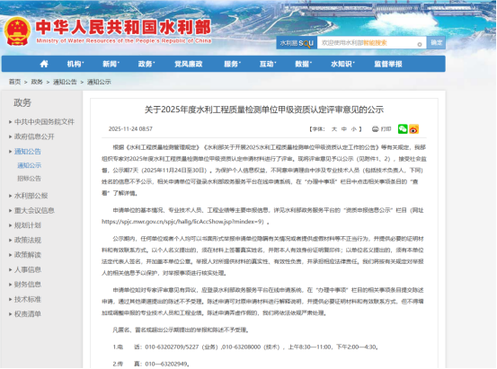 近日,水利部2025年度水利工程質(zhì)量檢測單位甲級資質(zhì)認定評審結(jié)果公示,惠州水務(wù)集團下屬大禹檢測公司、東江檢測公司雙雙傳來捷報,資質(zhì)建設(shè)實現(xiàn)里程碑式突破。